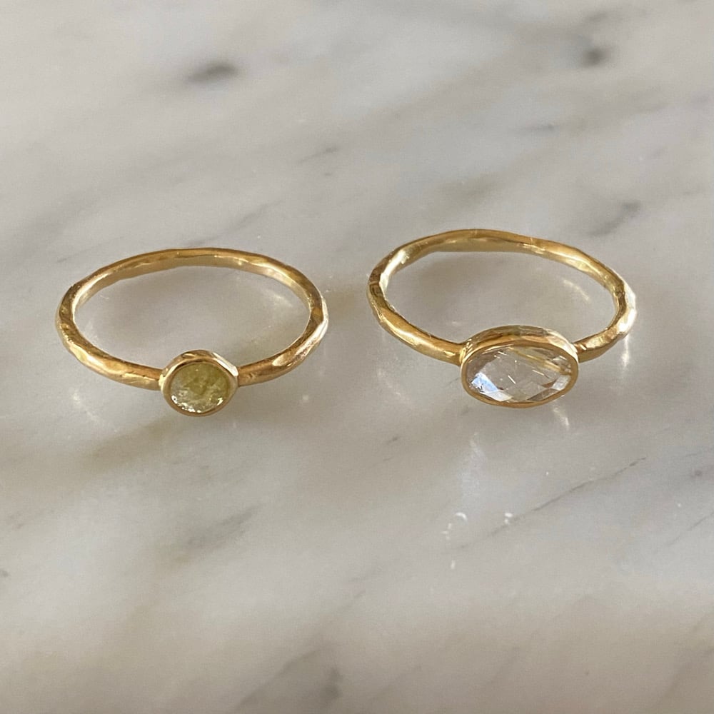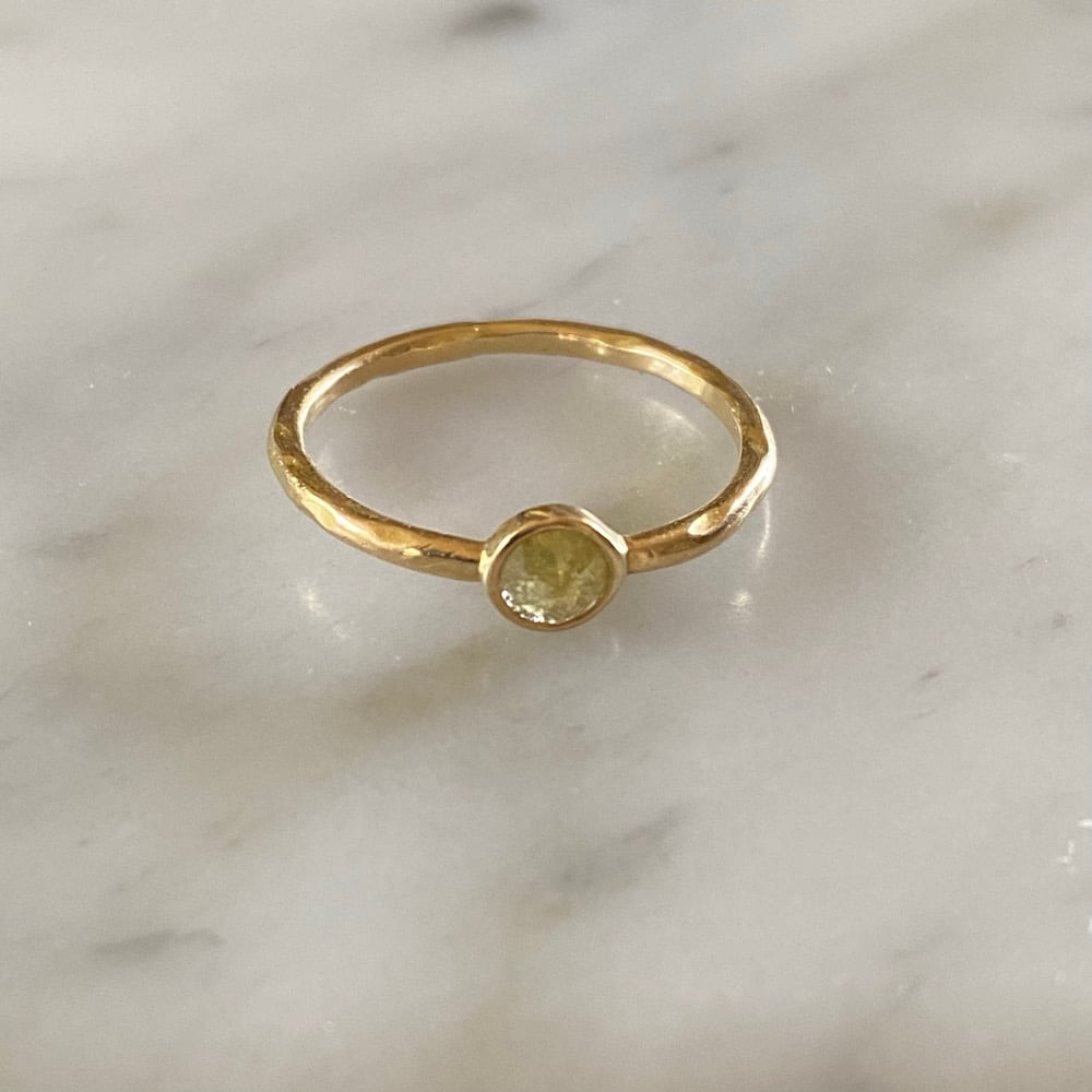 18k yellow hammered gold setting with rose cut yellow diamond from India. Only a few years old, not antique. Size 8
