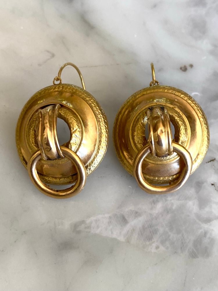 9k gold mid 1800's earrings possibly Italian. Light weight and delicate. Showing some wear.