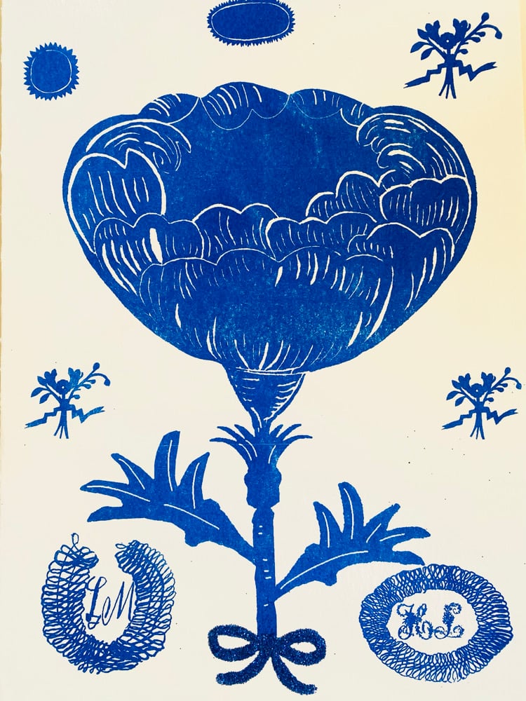 7x10 inch folded card with hand applied glitter on heavy art quality paper comes with vellum envelope.