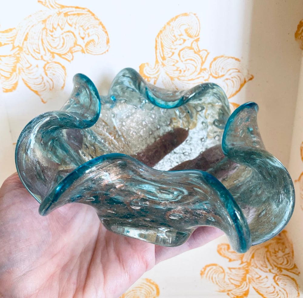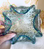 Heavy Venetian glass aqua blue bowl, mid century, perfect condition. Good cat food dish!