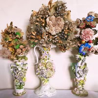 THREE antique Napoleonic flower bouquets and THREE c1850's vases.