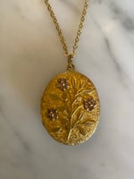 Oval rolled gold with floral forget me not appliqués American c1885